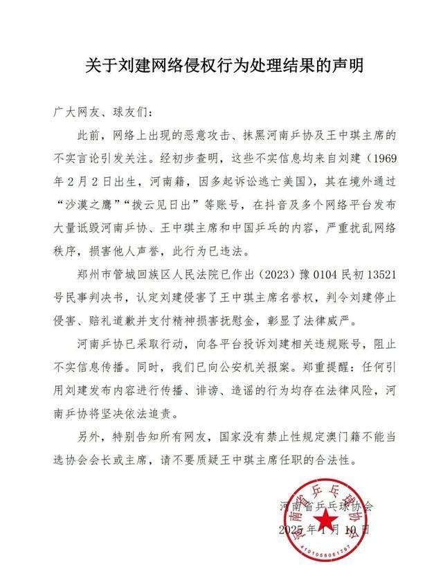 [时事新闻] 河南乒协辟谣协会主席王中琪被查 |