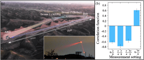 近年来,量子通信技术快速发展,但由于光纤存在固有损耗,量子信号又不能像经典通信信号那样被放大,制约着远程量子通信的实现。在外太空的自由空间信道,光信号损耗非常小,通过卫星的辅助可以大大扩展量子通信距离。随着我国“墨子号”量子卫星发射,卫星平台和地面光纤网相结合的量子通信技术方案已见雏形,但还存在大气湍流中如何实现量子干涉等重大技术挑战。 近期,潘建伟等人组成的科研团队开发出一种能抵抗强湍流能力的自适应光学系统,使双链路总信道效率提升了约4倍到10倍。并通过测量脉冲到达时间实时反馈,得到32皮秒的独立时钟同步精度;用新技术方案使干涉光的频率差小于10兆赫,从而实现远距离独立激光器之间的锁频。 得益于这些技术突破,潘建伟科研团队利用王向斌教授的四强度优化协议,最终在城市大气信道中实现了自由空间信道的测量设备无关量子密钥分发实验,通信双方的距离达到19.2公里,意味着向实现基于卫星的远程量子通信迈出坚实一步。也为在自由空间进行量子干涉的相关实验开辟了道路,比如研究量子中继器、量子网络,以及在大空间尺度中探索量子力学与广义相对论融合等科学问题。 国际知名学术期刊《物理评论快报》日前发表了这项研究成果。