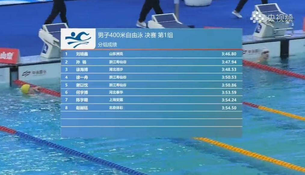[时事新闻] 全国游泳春锦赛:33岁孙杨400米自由泳游出3分47秒94,夺得银牌 |