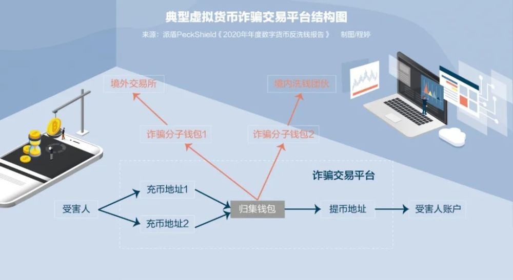 主犯张辛落网后,警方才从他的供述中得知,原来这个团伙利用虚拟货币洗钱。张辛是某数字交易平台的商家,2020年2月,有人找到张辛,以市场价买他手上的泰达币,转账100万元,这就是被诈骗的那笔钱从一级账户汇入二级账户的过程,诈骗者已经将100万元顺利转换成泰达币。而这笔钱此后从二级账户到五级账户的流转,都是张辛认为这笔钱恐怕是“黑钱”,有可能被警方冻结,因此做出的“反冻”腾挪举动。 彭启劲感慨,如果仅仅对银行账户的资金流进行追踪,警方既不知道他们实际上使用了虚拟货币洗钱,也不知道竟然早在资金从一级账户流转至二级账户时,这笔钱已经转换成了虚拟货币,回到一级账户持有者手中。从事主的100万元人民币汇入一级账户,到一级账户持有者拿到虚拟货币,整个过程只有6分钟。 复旦大学经济学院副教授、中国反洗钱研究中心执行主任严立新告诉《中国新闻周刊》,这实际上充分体现了虚拟货币其运行机制有着特别鲜明的去中心化、虚拟性、匿名性、实时性、难篡改等特征,无须金融机构的参与就可以完成交易。去中心化使得追踪一笔虚拟资产交易远比中心化状态下更为艰难,因为线索不易获取,完整的证据链也极难收集;实时性则意味着洗钱的步骤可以是毫秒级的运行速度,在全球任何一个地方发起并完成,监管机关或执法部门几乎没有足够的响应时间去及时阻断以防止损失或负面影响的发生。 抓获了张辛为主犯的洗钱“水房”,警方的调查并未结束。一级账户的持有者是实施诈骗的人吗?张辛卖出的泰达币流向了哪里?诸多问题还待解答。在对11个一级账户进行行为习惯的分析之后,警方发现,一级账户仍非诈骗者,而是另一拨从事洗钱的人,跑分客。 跑分,是这些年的新兴事物。跑分平台是指通过第三方支付平台合作银行及其他服务商等接口,非法对(赌博、淫秽色情、诈骗等)提供支付结算业务的网上平台。跑分客,就是在这些平台注册账户,提供自己的支付宝、微信、银行等支付渠道收款码,为他人代收款并转款至指定账户,从中收取佣金的人。 近几年来,随着反洗钱行动的深入,跑分平台也开始通过虚拟货币洗钱。彭启劲介绍,在前述案件中,事主在“币齐”这个网站投资,充值时,网站会自动而隐秘地跳转至跑分平台。事主充值的310万元,并未进入诈骗者的账户,而是直接进入了该跑分平台各跑分客的账户。根据跑分平台工作人员的指挥,这批资金通过虚拟货币的方式“洗白”。