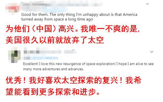 而面对中国递出的“橄榄枝”,各国也纷纷给出积极回应。 日本《朝日新闻》今年1月27日报道称,俄罗斯国家航天公司与中国国家航天局签署了5年的合作项目,将在月球、火星探测方面开展合作;英德法等欧洲国家组成的欧洲航天局,也在与中国推进技术合作,希望共同建设月面基地…… 同样对中国在太空探索取得成就乐见其成的,还有众多外国网友: