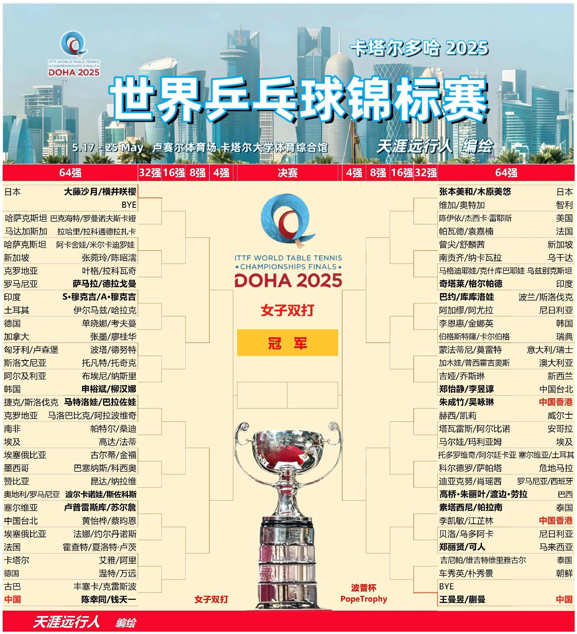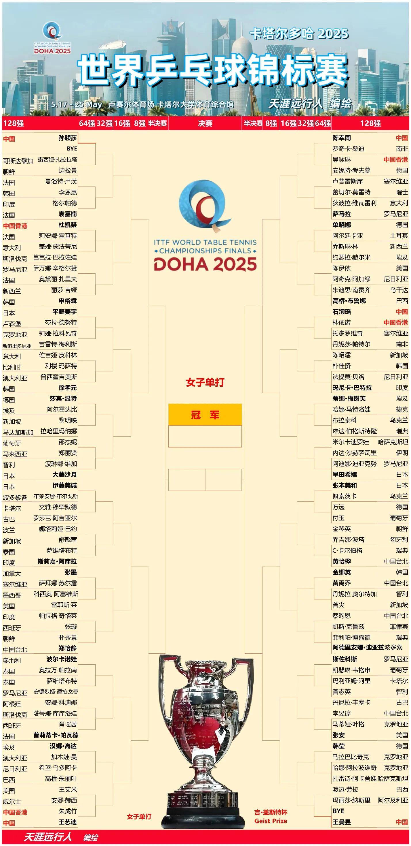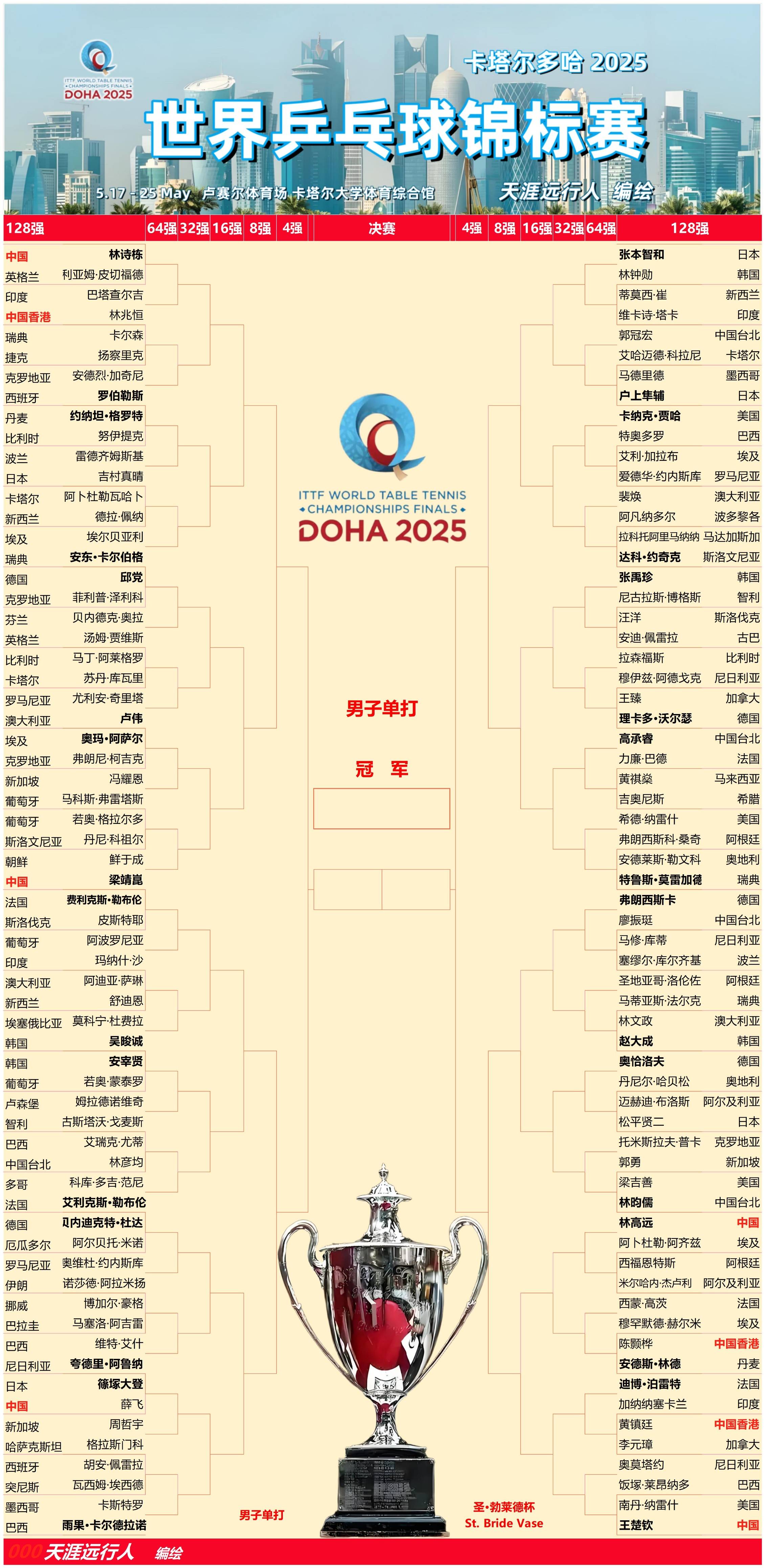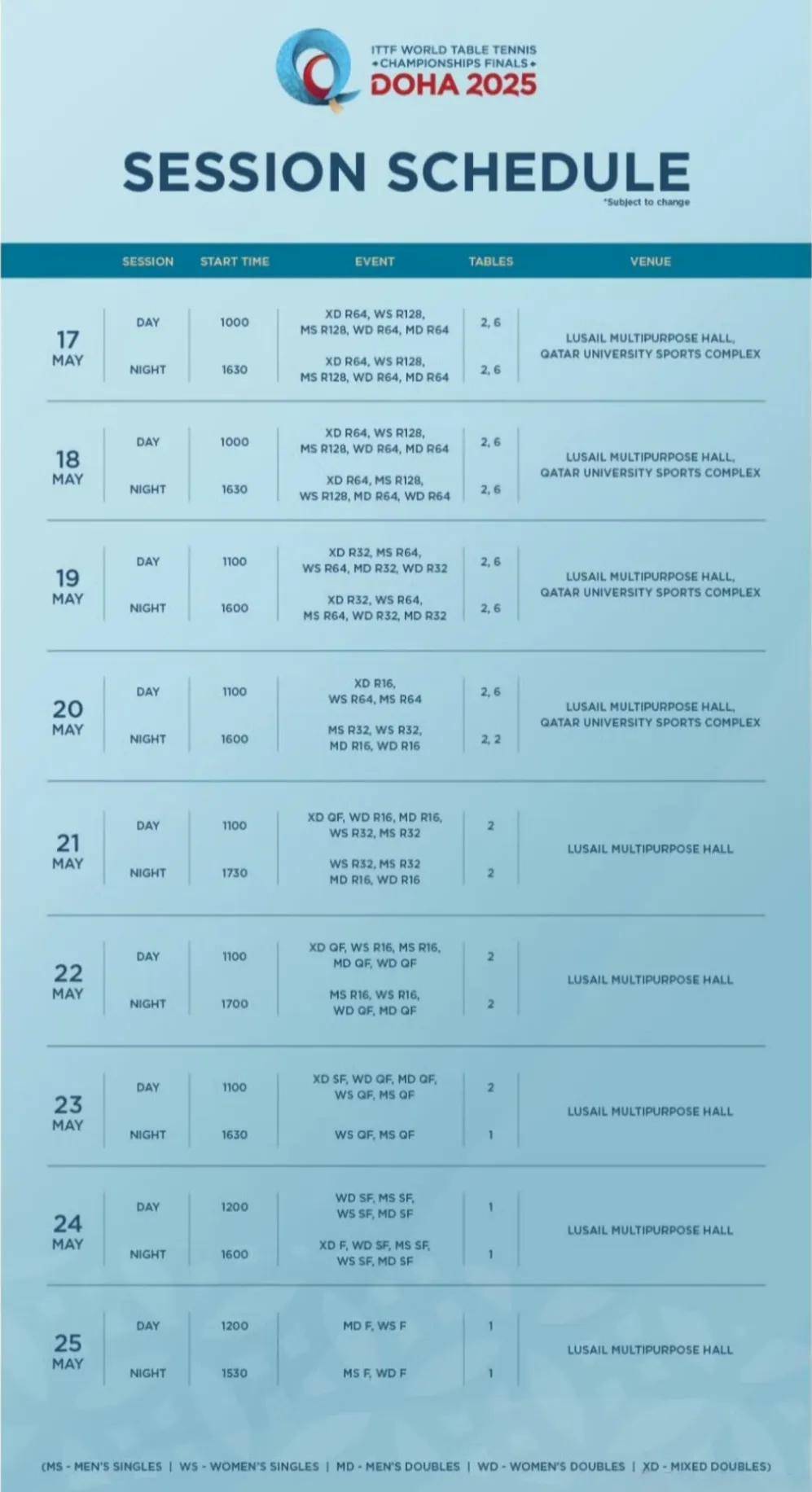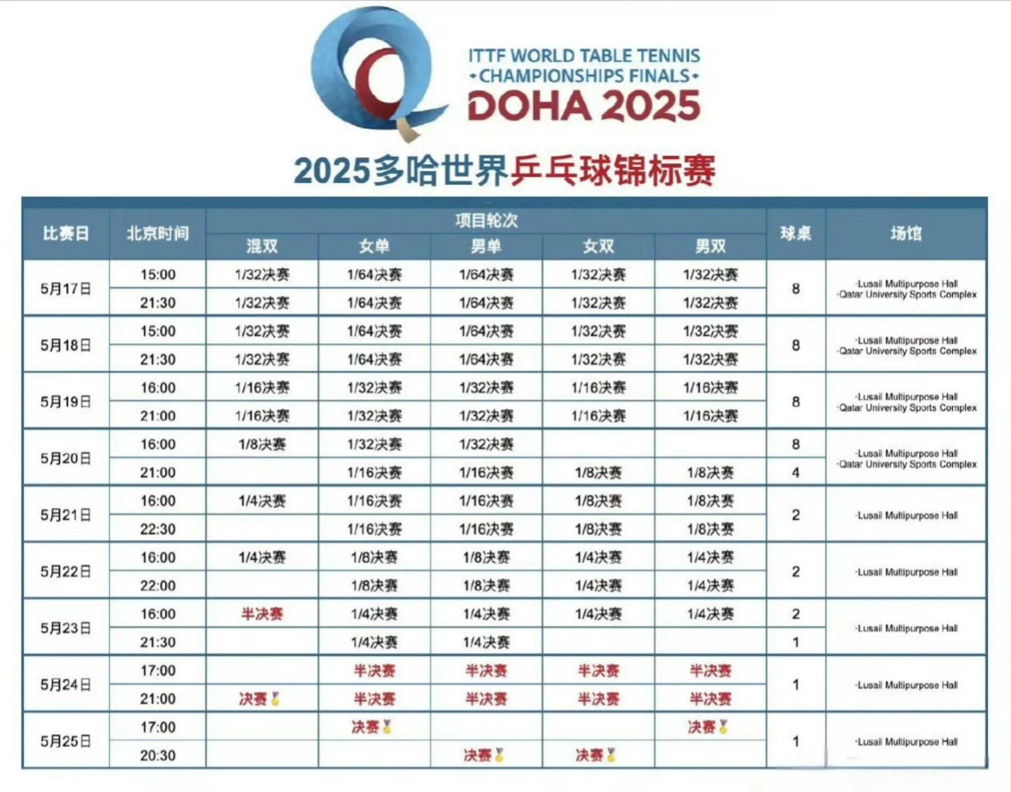 [时事新闻] 请收藏!一表看多哈世乒赛全程,国乒首轮完整赛程,球员退赛快讯 |