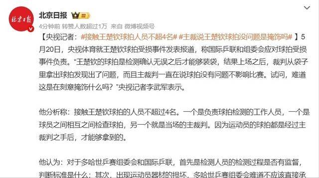 “球拍风波”没太影响王楚钦 多哈世乒赛第四天国乒战绩汇总