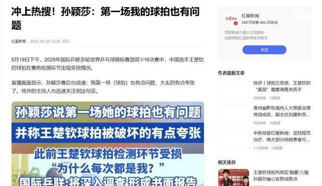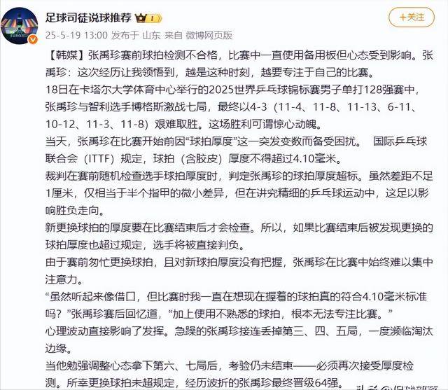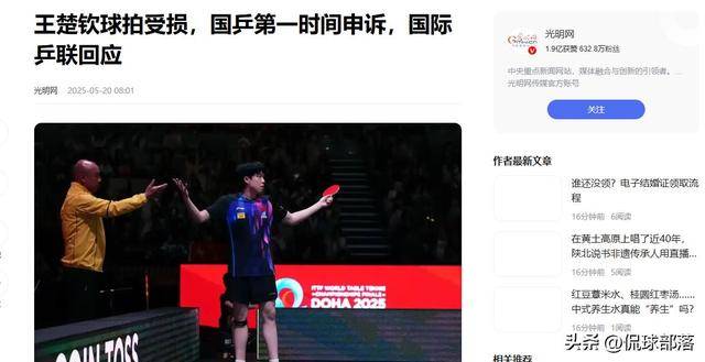 [时事新闻] 王楚钦赛前更换球拍,肖战称王楚钦球拍胶皮疑被掰开 |