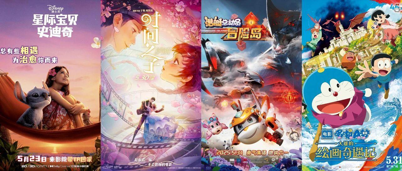 《时间之子》 《时间之子》由王俊凯、刘校妤、周深、黄渤、贾冰等众明星配音。影片讲述了冷面杀手十七与渔村少女千晓因上古神秘圣物时轮结下缘分,进而开启一段浪漫的冒险之旅。 影片中,无论是时间停滞时粒子流动的特效,还是都市、荒原、汪洋等空间的转换,都构建出了一个充满想象力的浪漫世界。 《潜艇总动员:冒险岛》 作为系列IP,即将上映的《潜艇总动员:冒险岛》延续该系列“海洋科普+奇异冒险”的基因。影片中,独眼鲨因为触发了史前海怪觉醒,使得地球危在旦夕。关键时刻,大湾区潜艇小队齐心协力封印海怪,成功守护海上丝绸之路的安全。 影片引入机甲合体、怪兽激战等热血元素,打造了一场兼具视觉震撼与成长启示的深海冒险。 《哆啦A梦:大雄的绘画奇遇记》 没有什么快乐是蓝胖子给不了的!相信很多人的童年都被哆啦A梦治愈过。即将上映的《哆啦A梦:大雄的绘画奇遇记》是“哆啦A梦”系列电影45周年纪念之作。影片聚焦“绘画”主题大冒险,讲述了哆啦A梦一行人意外穿越至名画中13世纪的雅托利亚公国,开启一段神奇冒险之旅。 《星际宝贝史迪奇》 正在热映的真人版《星际宝贝史迪奇》,也受到不少观众的喜爱。《星际宝贝史迪奇》改编自同名动画电影。影片讲述来自外星的史迪奇,在一场太空追捕中意外降落在夏威夷海岛,与孤独的小女孩莉萝相遇,发生了一段有趣又温馨的故事。 真人版不仅保留了动画版的经典剧情,还加入现代视角的冲突与成长元素,让故事更加丰富立体,在冒险中传递爱与温暖。 这个假期,与小朋友一起踏上“冒险征程”,在欢笑中见证孩子们的勇敢与成长吧。 (总台央视记者 许盼盼)