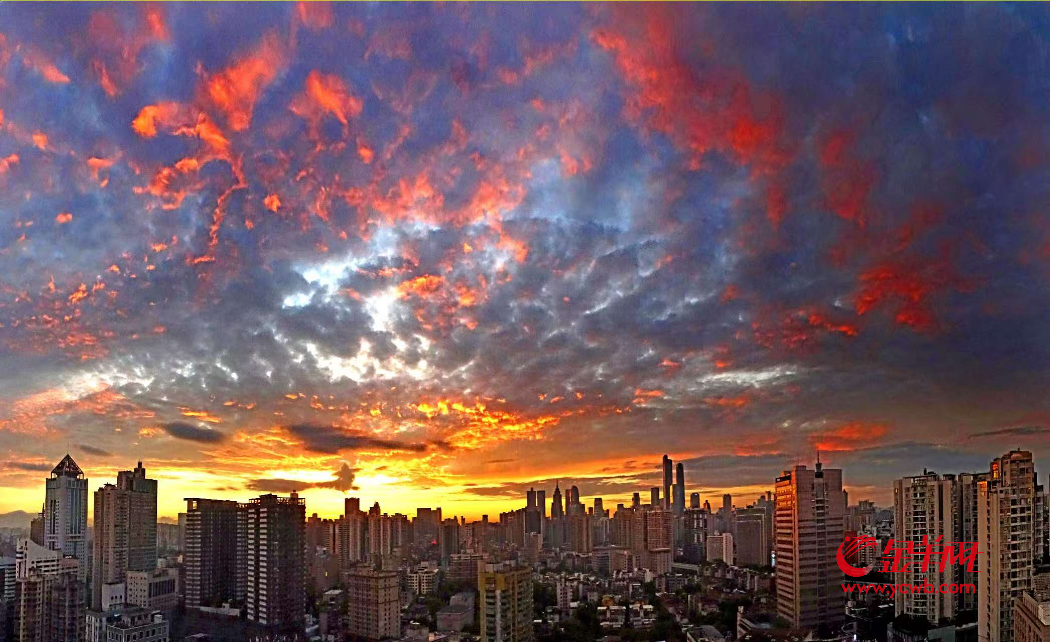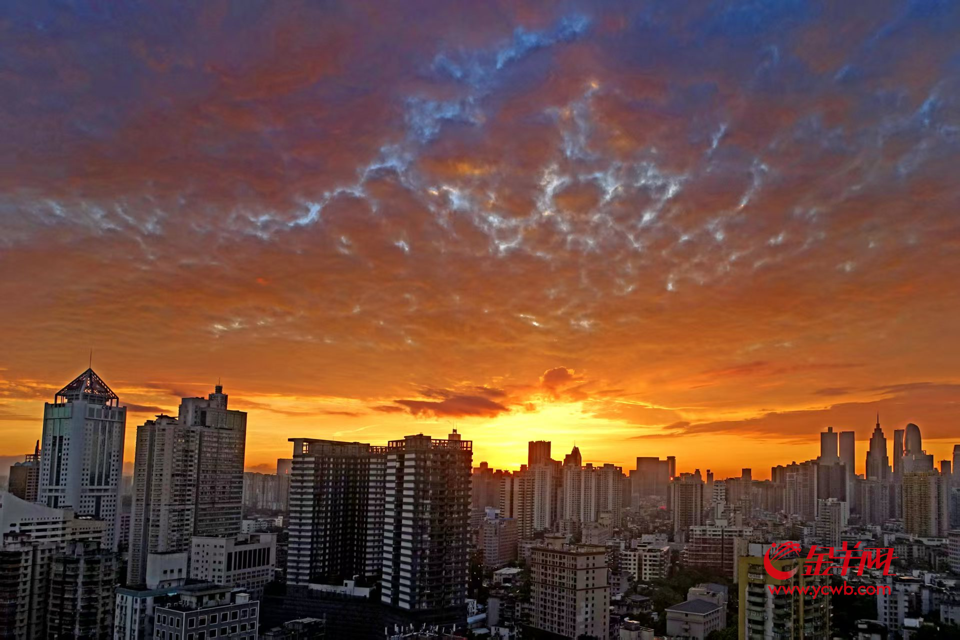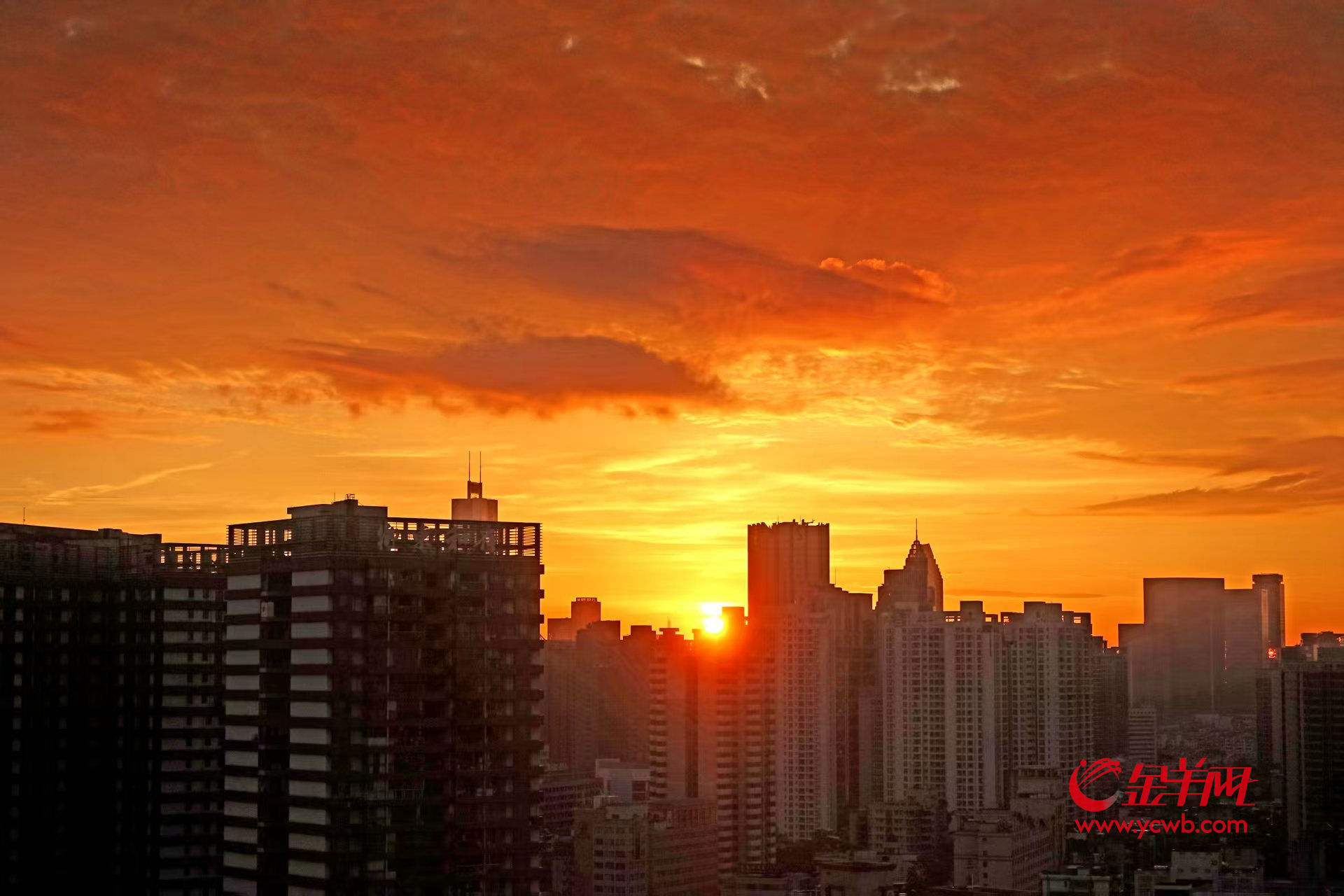 那么,火烧云的成因是什么? 据北京市气象台相关专家此前的分析,火烧云呈现橙红色的原因,依赖于太阳。 太阳的光由多种颜色的光组成的,其光波长各不相同。当它们遇到空气中的障碍物,如气体分子、水滴、尘埃等时,会发生偏转,这种现象称为太阳光散射。较短波长的光(如蓝光和紫光)比较长波长的光(如红光和橙光)更容易被散射。 在晴朗的白天,由于蓝光的散射率更高,我们看到天空会呈现出蓝色;而在日出和日落时,太阳光相比正午穿过大气层的路径更长,这意味着光线需要经过更多的散射,在这个过程中,较短的蓝紫光被散射的更多,而较长的红橙光由于受散射影响较小,会被更多的保留下来,因此日出日落时的天空多呈现出红、橙和黄色。 然而,并非所有观察者都能轻松观赏到这一景致,其所在地和太阳光传输路径上的天气条件起着至关重要的作用——日出日落前后,太阳光传输路径上没有降水、低云等遮挡,光线可以到达观察者所在地;其次,观察者所在地的大气透明度高、能见度好,没有雾或霾;观察者所在地有可以作为“幕布”的云层出现,被红色和橙色为主的太阳光照亮,如此才能看见我们所说的朝霞和晚霞。 而在霞出现之前的降水,不论在能见度还是空气清洁度方面,都为“火烧云”的亮相提供了更完美的舞台,这也是雨后更容易出现超级朝霞或是晚霞的原因。 另外,可能很多市民会有疑问,彩虹挺常见的,不过双彩虹却难得,它的成因又是什么? 据广州市气象台相关人员此前的分析,从学术上讲,“双彩虹”中一条是“虹”(主虹),一条为“霓”(副虹)。“霓”“虹”同时出现的条件是在天空水汽充沛且太阳光入射角分别为42°左右和52°左右,因此大家能欣赏到“双彩虹”的时间常在早晨和傍晚的雨后。 理论上来讲,光线可反射3次、4次形成更多层彩虹,但因光线急剧减弱,肉眼极难观测到。 下次看到双彩虹时,记得观察颜色顺序和亮度差异——这是大自然用阳光和水滴演绎的绝妙光学魔术! 文 | 记者 梁栋贤 图 | 郑讯