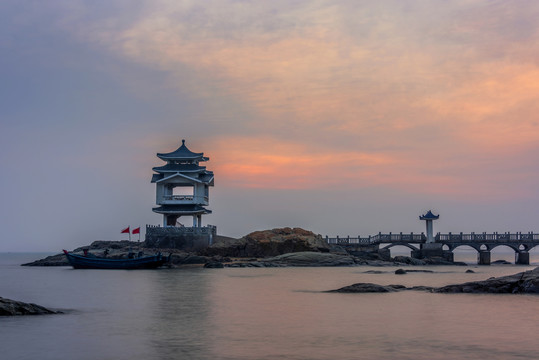 海面上三块巨大礁石经人工建筑的风景亭桥连为一体。成为兴城海滨最著名的“三礁揽胜”佳景。菊花岛山石秀美,古木参天,南有伥山岛和阎山岛,北有磨盘山,一大三小相映成趣,岛上有大龙宫寺,大悲阁,八角琉璃天,唐王洞等名胜古迹。