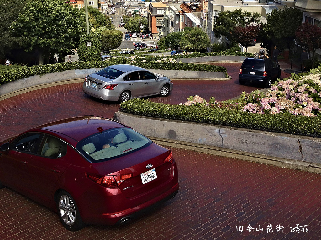 由於花街陡峻而彎曲,舊金山市還就車輛行駛做出特殊規定,規定行使車輛必須繞著花壇盤旋行進,不得對花壇造成任何損壞;車速必須減至5英里以下,否則會受到相應處罰。不過到這裡誰又想開快?好不容易排隊等到了,又是東張西望美景難收,巴不得賴著不動呢!