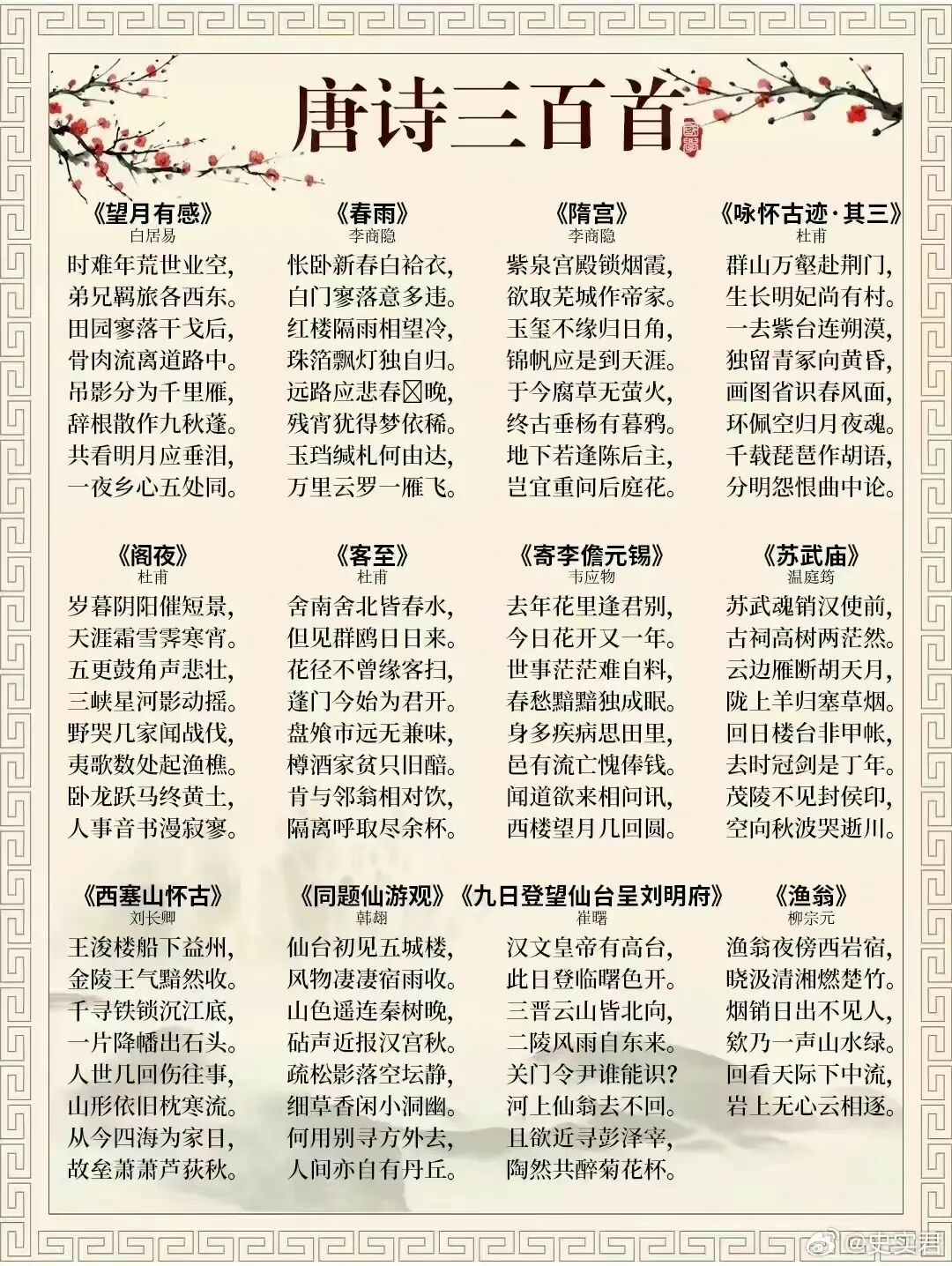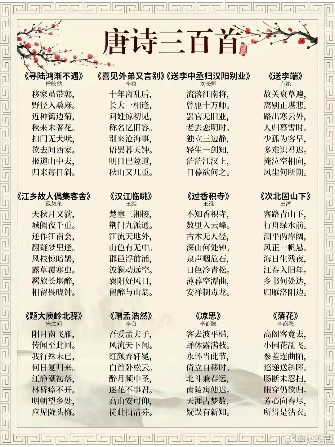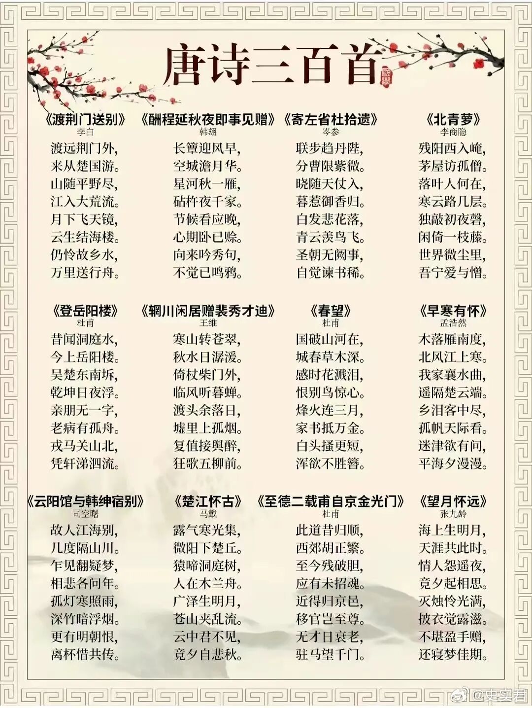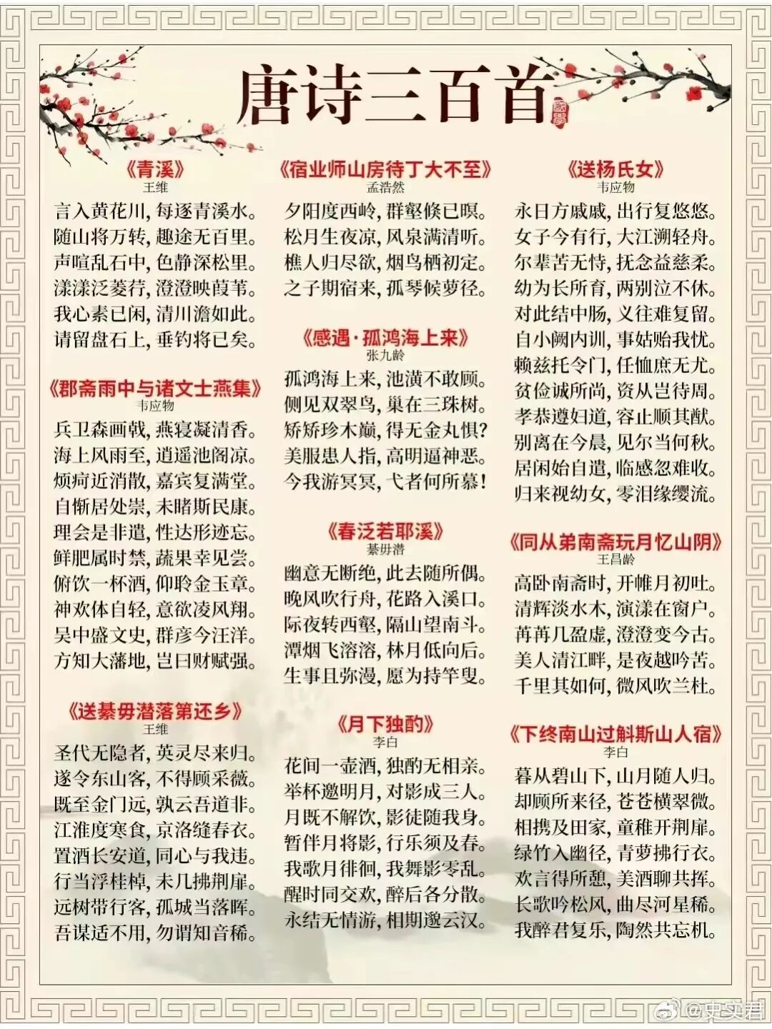 [其他] 《唐诗三百首》完整版313首,流传最广,影响最大! |