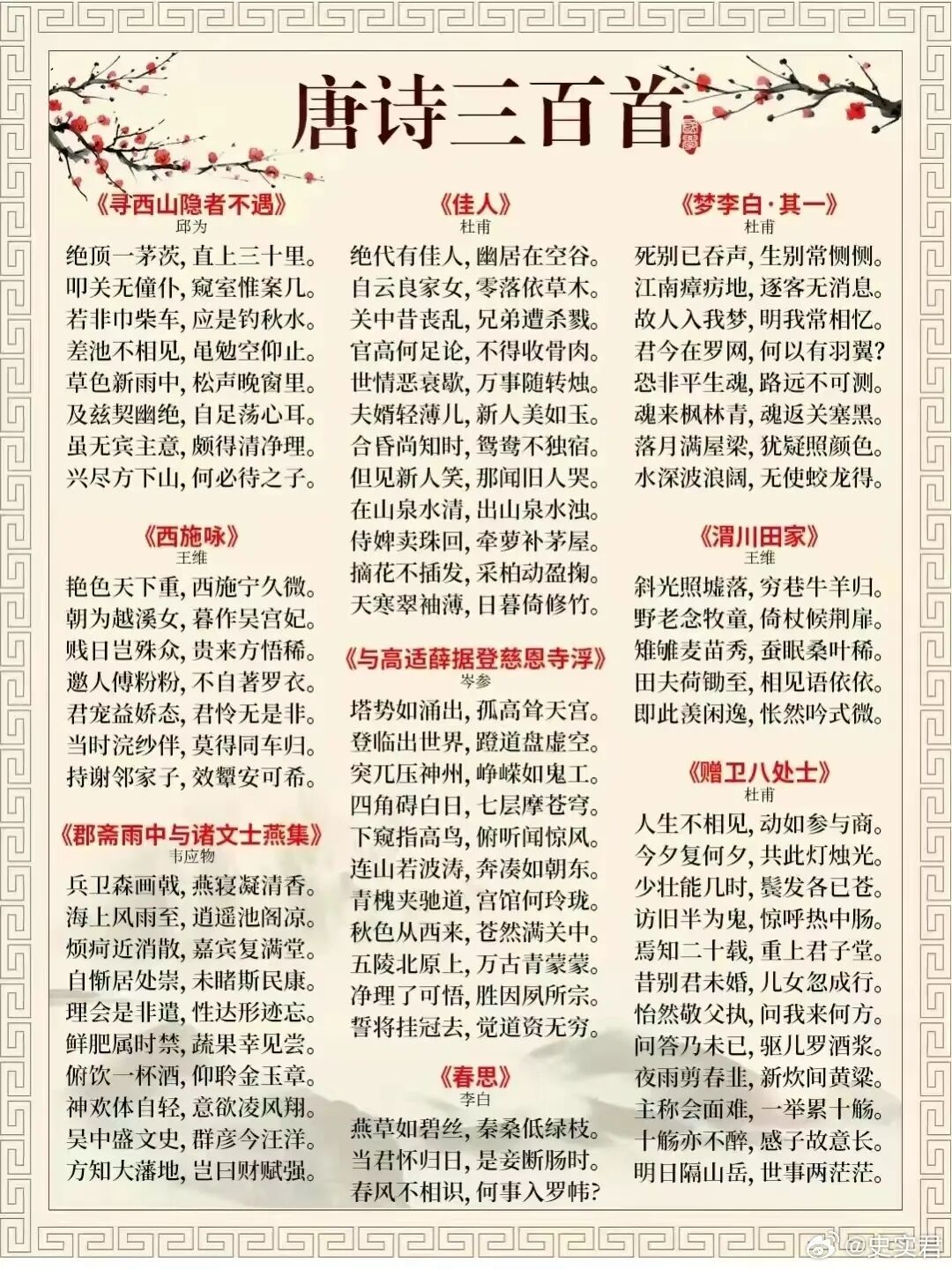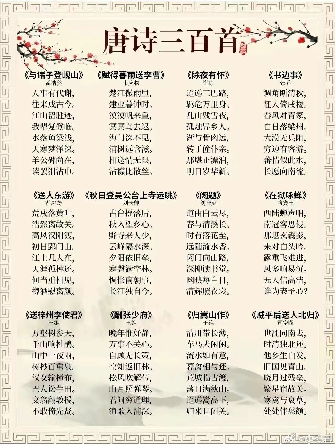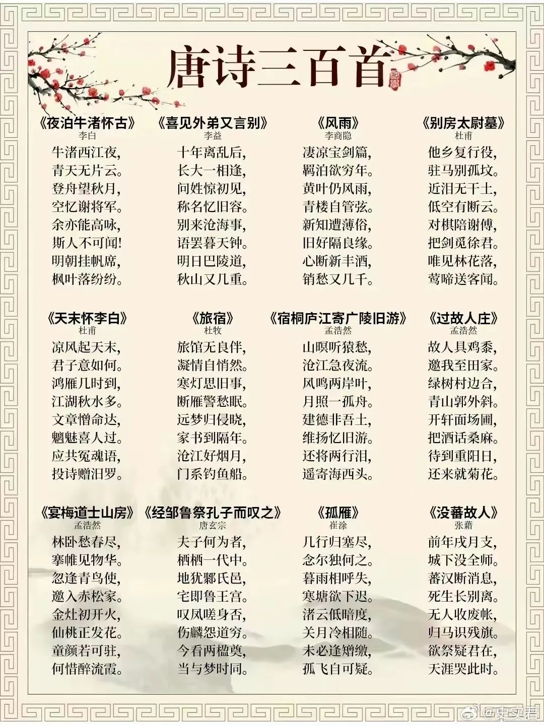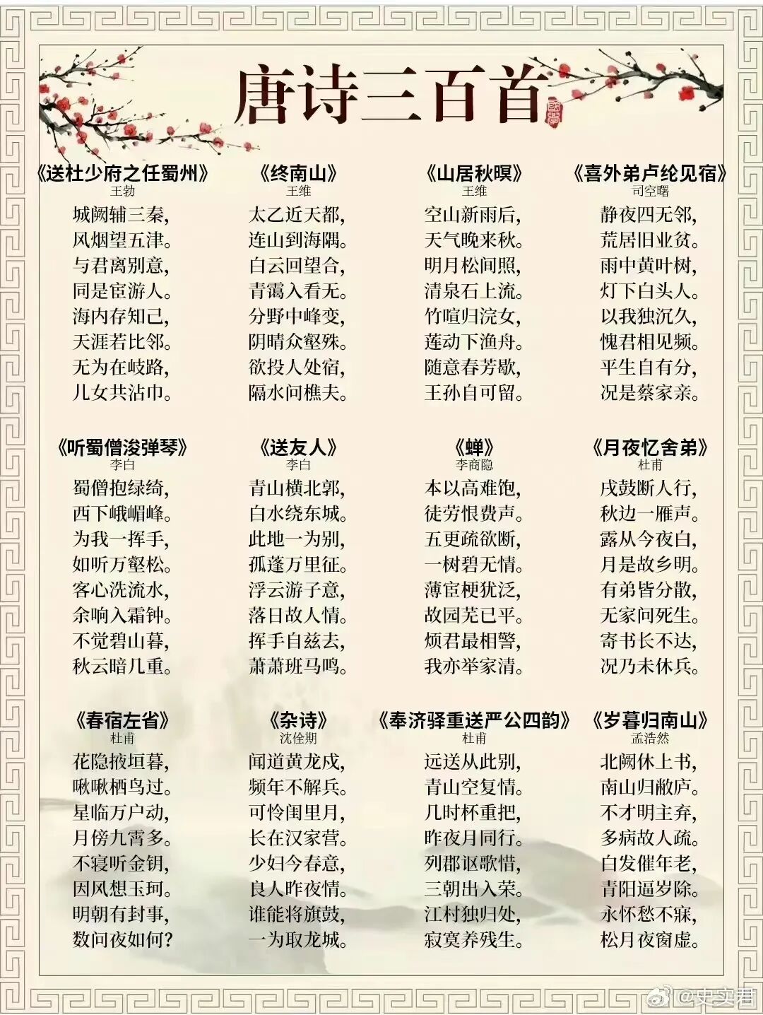 [其他] 《唐诗三百首》完整版313首,流传最广,影响最大! |